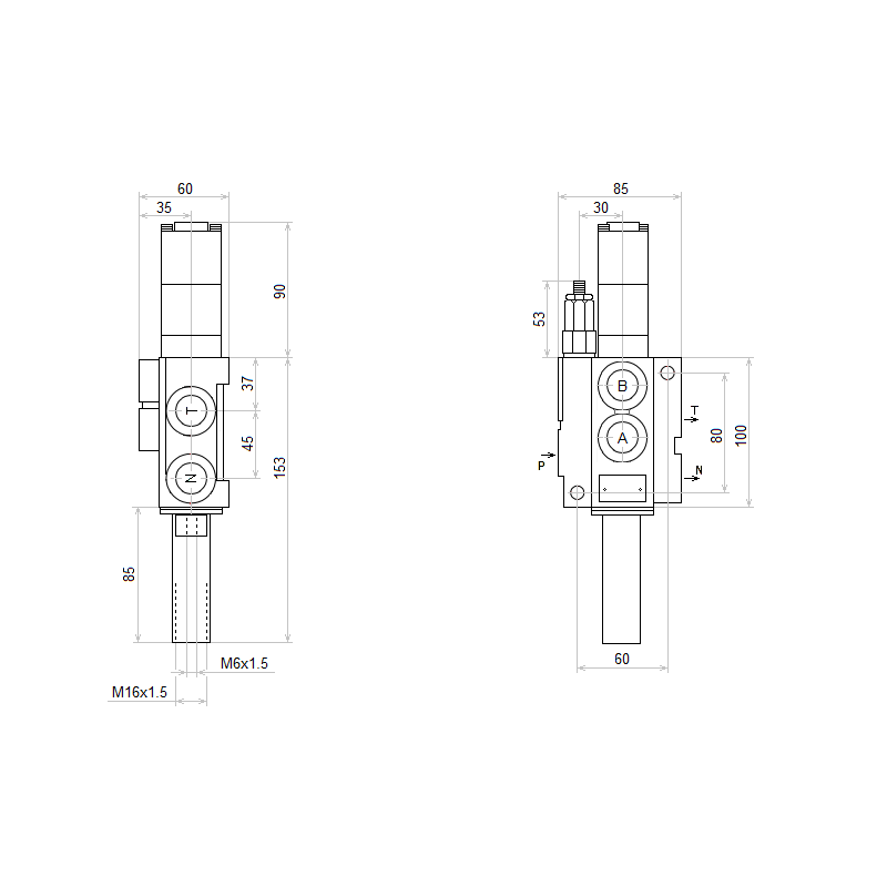 | Link připojení: | Vnitřní závit trubky: M16x1,5 Vnitřní závit hrotu slideru: M6x1,5 |