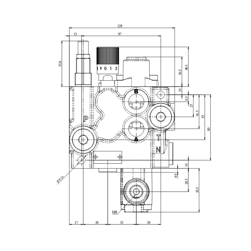 HYDRAULICKÝ ROZDĚLOVAČ 1SEKČNÍ P40 l/min S REGULÁTOREM PRŮTOKU