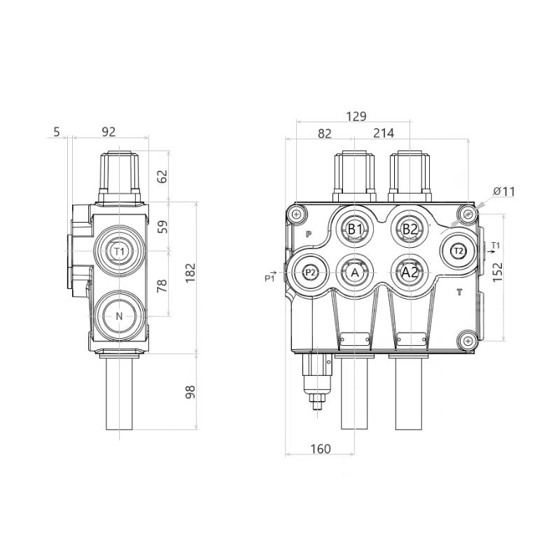 2-sekční hydraulický rozvaděč, 160l/min, ovládaný lanky a joystickem