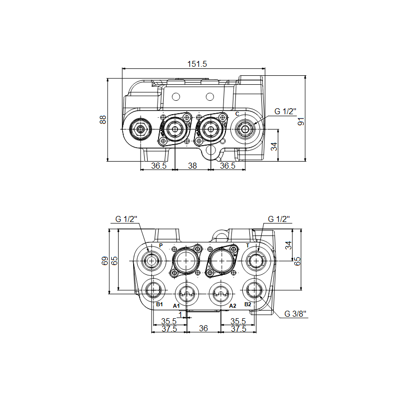 Uzpůsobeno pro ovládání čelního nakladače u západních traktorů typu VALTRA a dalších, u kterých není hydraulické čerpadlo vybaveno systémem LS. Používá se všude tam, kde je z důvodu bezpečnosti, lepšího komfortu ovládání a nutnosti udržování čistoty nutné instalovat rozdělovač mimo kabinu. V kabině zůstává pouze řídicí jednotka, např. joystick. Tím je zajištěno, že nehrozí žádné riziko úniku oleje do kabiny. Jedna sekce má plovoucí polohu. Navrženo pro práci v uzavřených systémech bez systému LOAD SENSING (MDL). Port C umožňuje převést proud oleje do jiného distributoru nebo jiných přijímačů. |