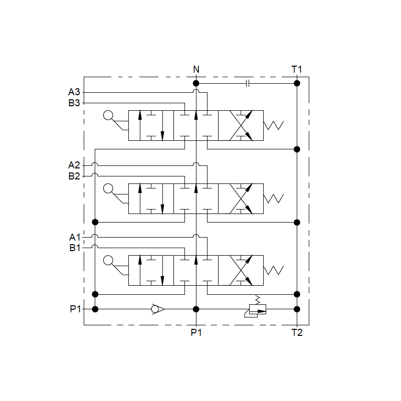 Určeno pro ovládání jednostranných nebo oboustranných válců. Má tlakový výstup N potřebný pro sériové připojení nebo pro instalaci rozdělovače jako dalšího do stávajícího systému. Rozvaděč je určen pro různé typy strojů jako jsou: zemědělské stroje, traktory, postřikovače, tourery, kyklopy, nakladače HDS, stavební stroje, nakladače, bagry, zametače, průmyslové stroje a další hydraulicky ovládaná zařízení. |