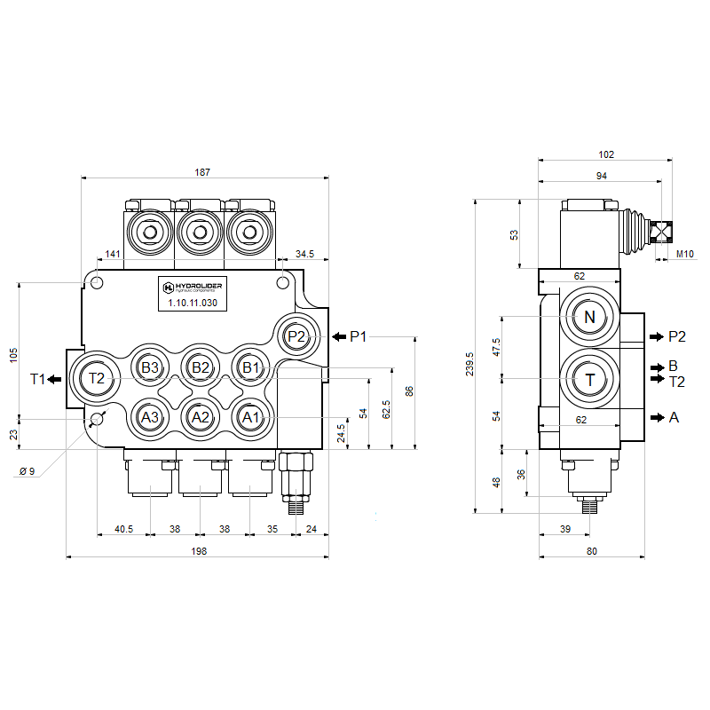 3-SEKČNÍ HYDRAULICKÝ ROZVÁDĚČ 3P80A1A1A1GKZ1