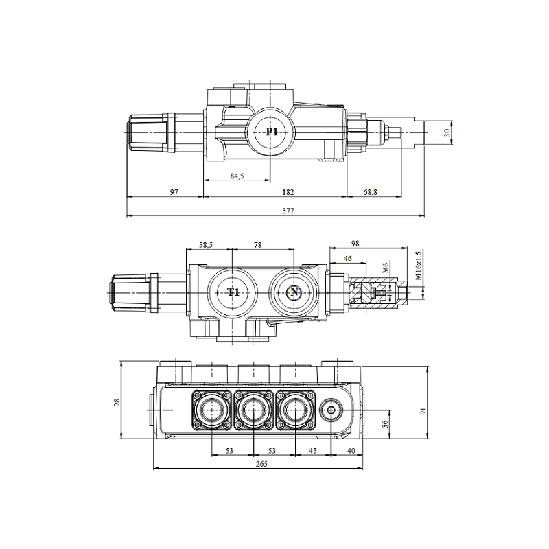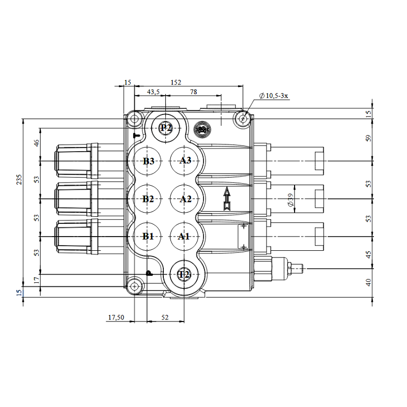 3-SEKČNÍ HYDRAULICKÝ ROZVÁDĚČ P160L/min