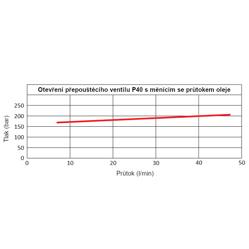 Otevírací tlak přepouštěcího ventilu se zvyšuje úměrně s rostoucím průtokem: