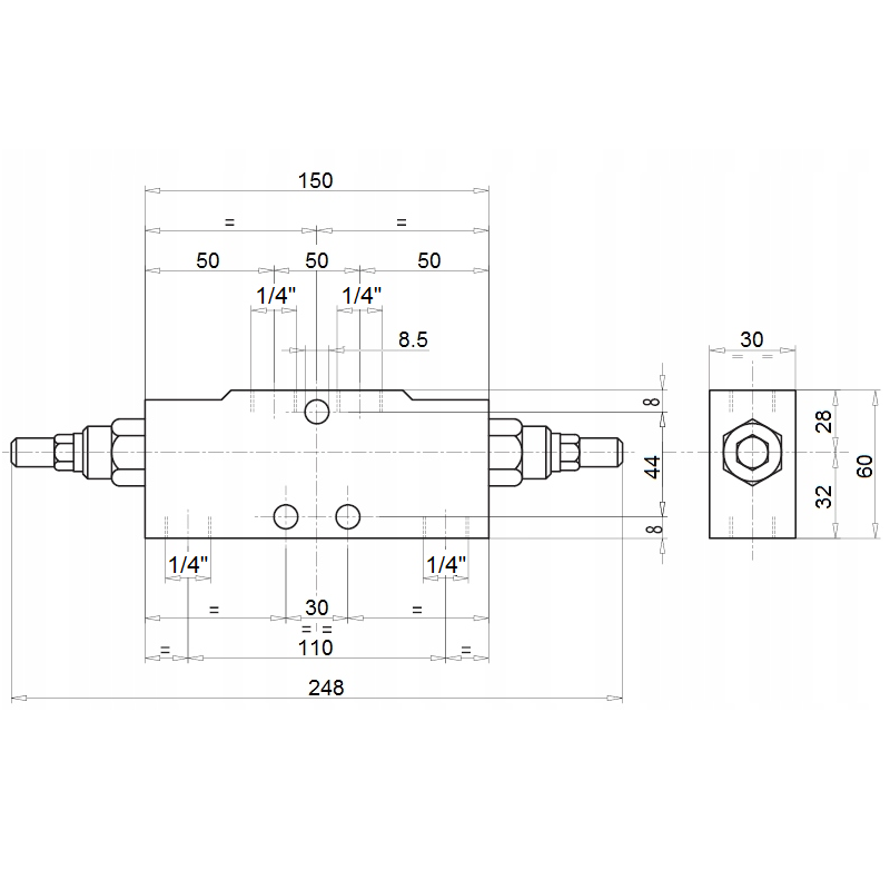 HYDRAULICKÝ VENTIL OVERCENTER "ZÁMEK" VBCD 1/4" DE-A