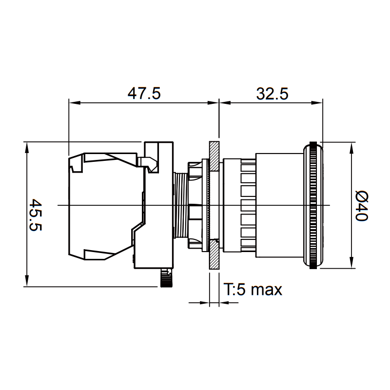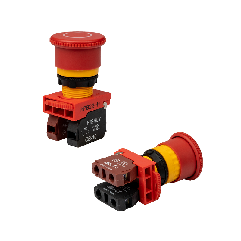 Elektrický spínač lze použít k náhlému zastavení jakéhokoli elektricky ovládaného stroje. Určeno pro montáž do otvoru Ø 22 mm. Instalace se provádí posunutím červené západky doleva, vyjmutím tlačítka, odšroubováním kroužku, prostrčením spínače otvorem pouzdra, zašroubováním kroužku, zatlačením tlačítka do základny a posunutím západky doprava. Po stisknutí tlačítka se stroj vypne. Chcete-li odemknout, otočte hřibovou hlavou doleva a poté vytáhněte nahoru. |