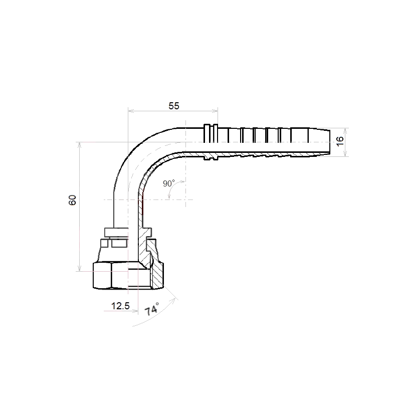 DKJ-90 ÚHLOVÉ LIŠOVÁNÍ DN16 1/2SN 1 1/16"-12 UNF