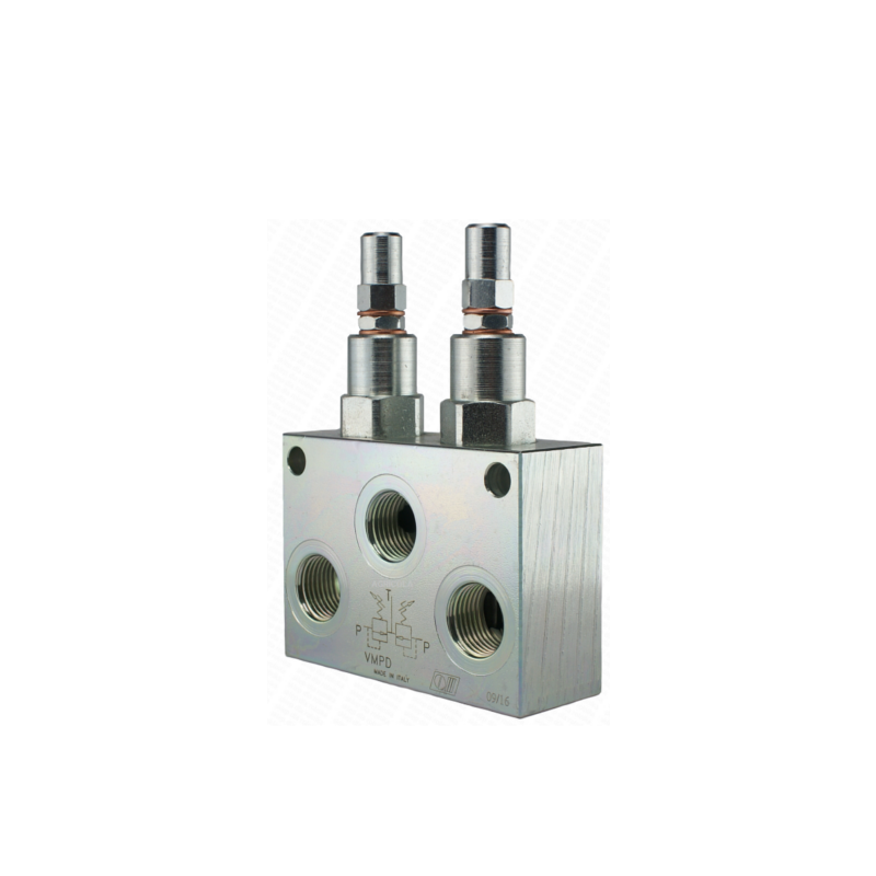 Dvojitý přepadový pojistný ventil VMPD 1/2" seřiditelný: 10-180barů průtok: 70L/min
