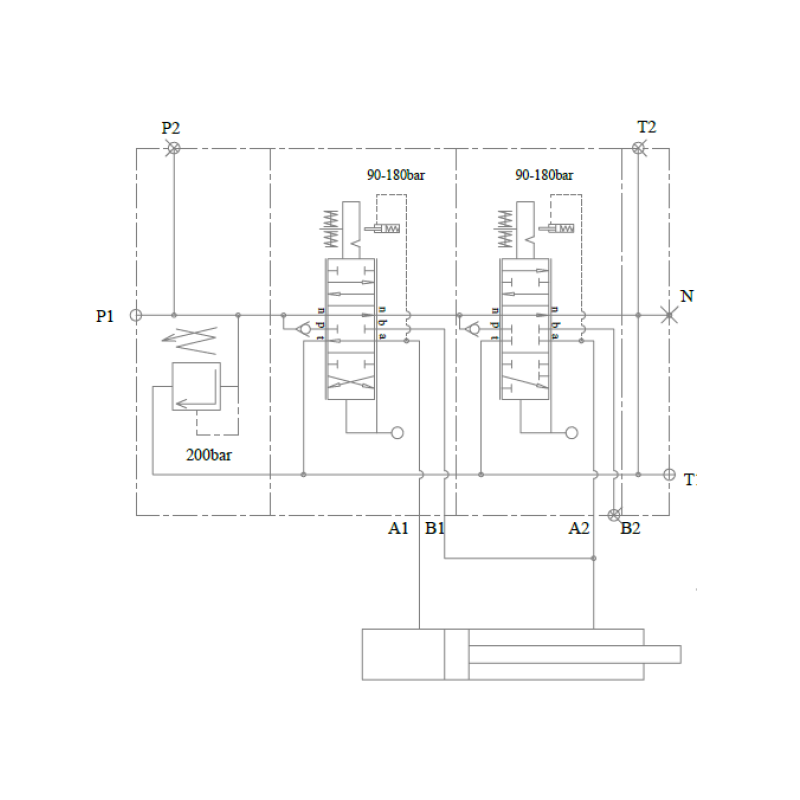 Jakmile je tato fáze dokončena, první šoupátko se automaticky vrátí do neutrální polohy díky hydraulické funkci vypínacího mechanismu, která spustí zpětný pohyb pohonu.