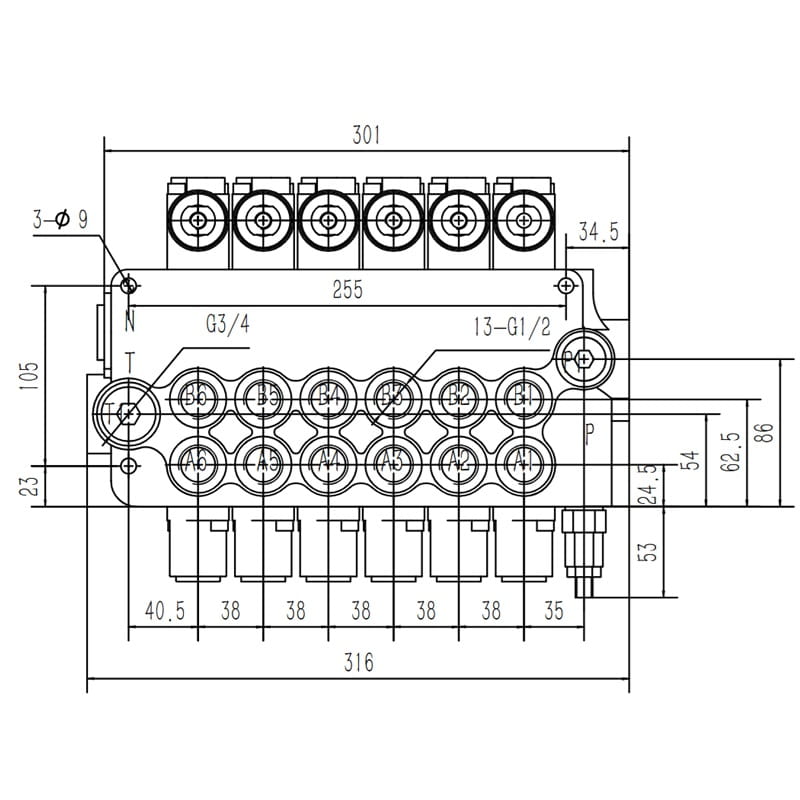 6-SEKČNÍ HYDRAULICKÝ ROZDĚLOVAČ