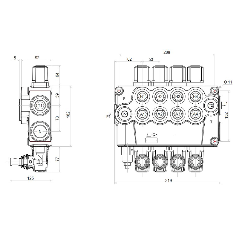 4-SEKČNÍ HYDRAULICKÝ ROZVÁDĚČ