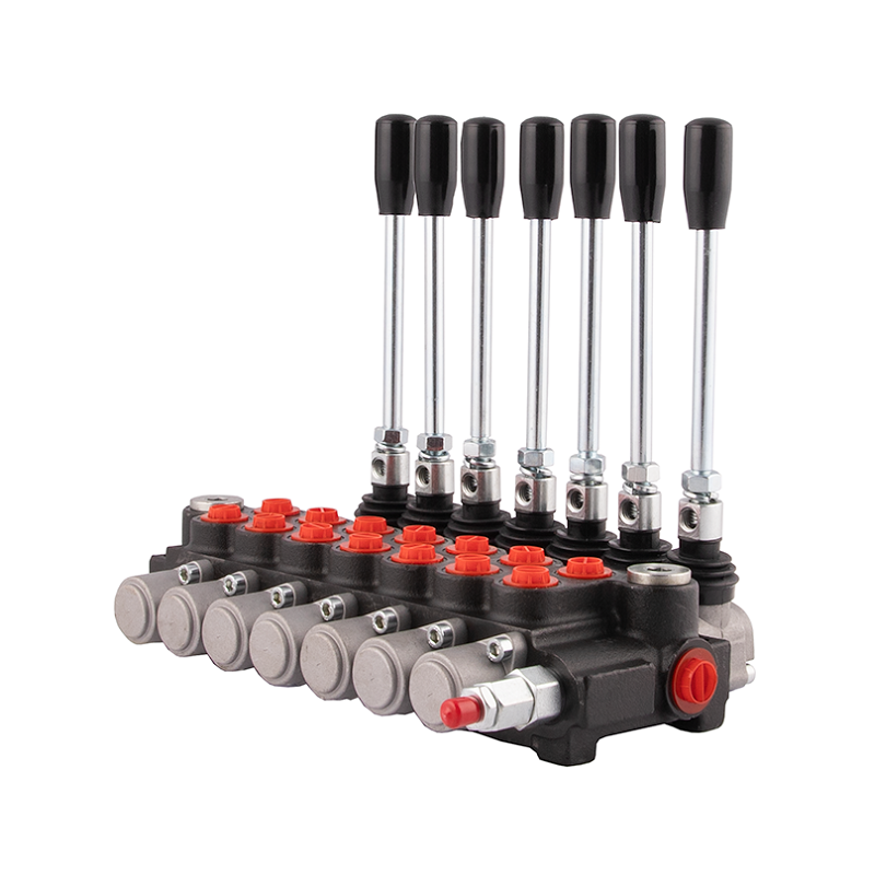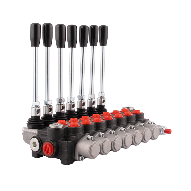 Hydraulický rozvaděč, 7 sekcí, 40 l/min 07P40A1A1A1A1A1A1A1GKZ1, ovládaný pákou