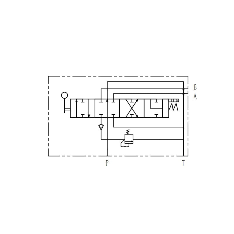 Poloha 0 neutrální (páka ve svislé poloze) pístní tyč válce je v klidu - olej proudí do přepadu.