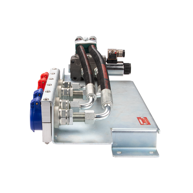 Hydraulika pro otočný nakladač, PUSH-PULL, 3dílná deska, 6/2 elektromagnetický ventil, rychlospojky