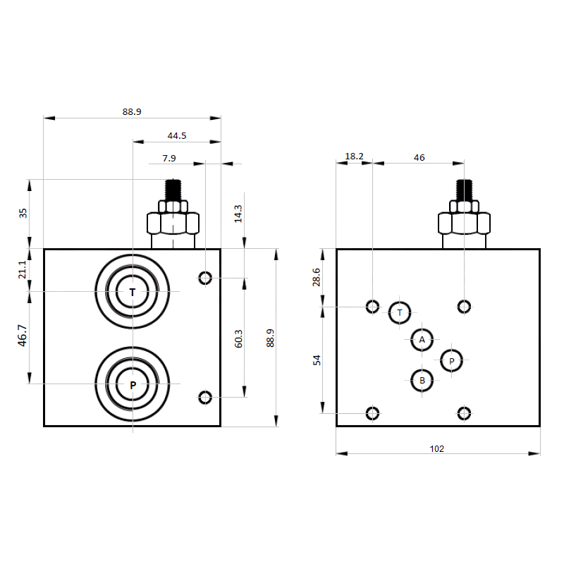PODZÁKLADNÍ VENTILOVÝ BLOK 1 SEC CETOP 5 NG10