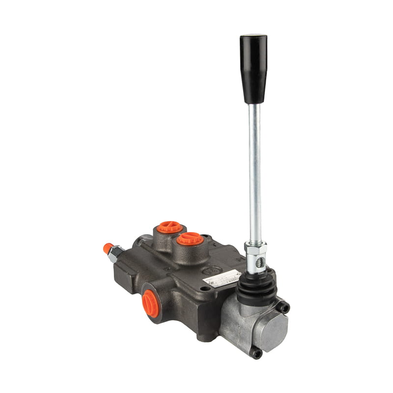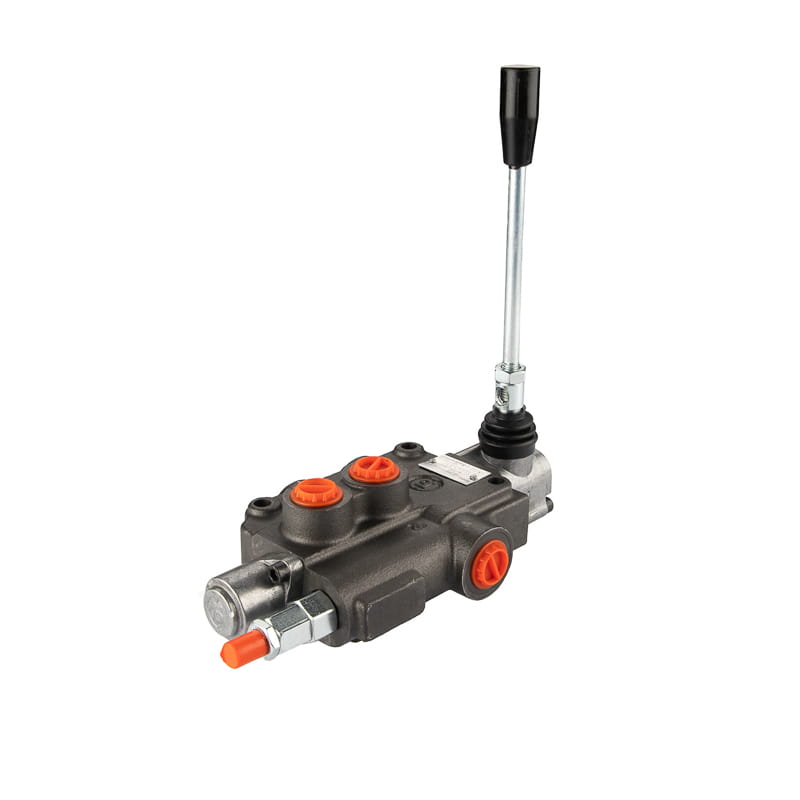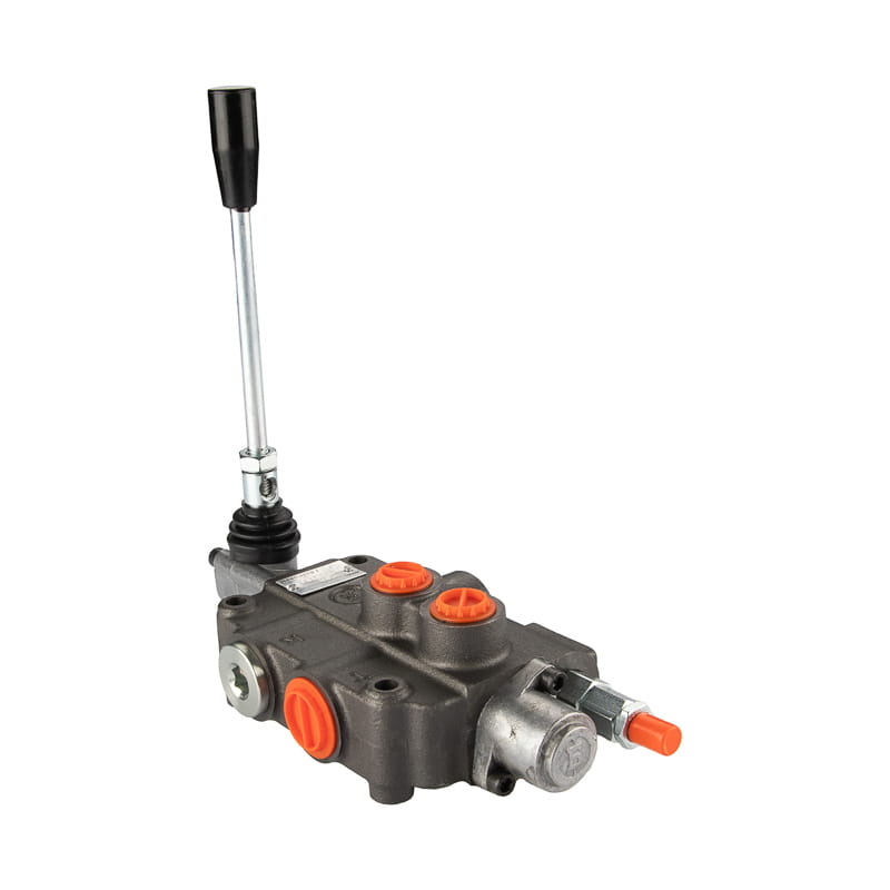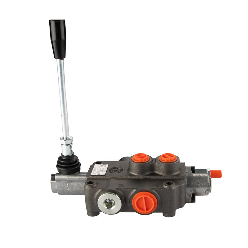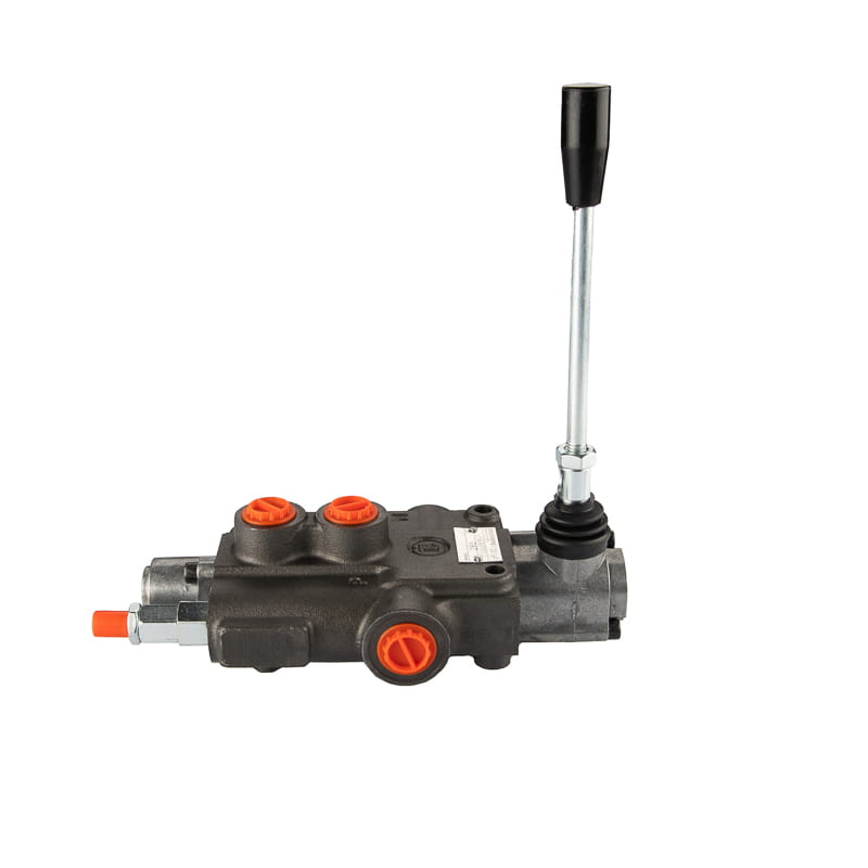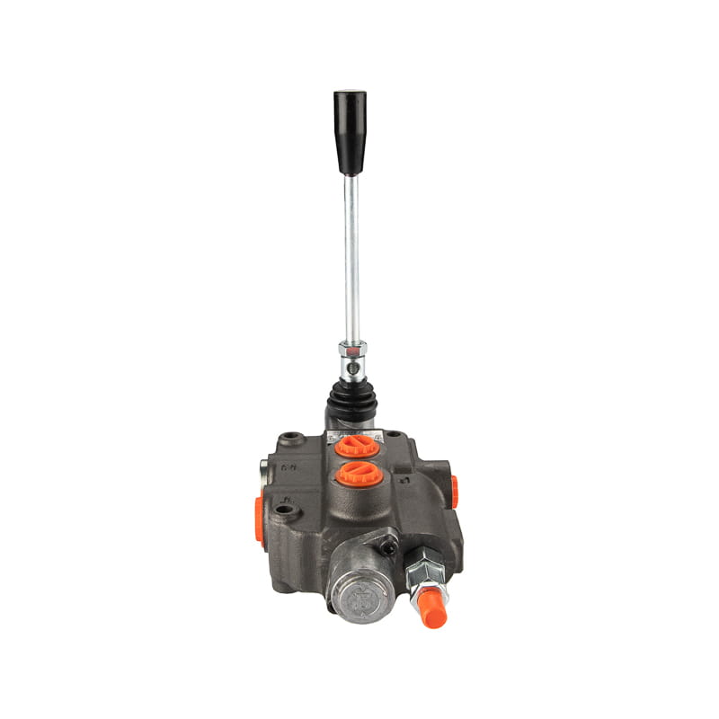 Jednodílný hydraulický rozdělovač 80 l/min s pružinovou pákou s automatickým nastavením do polohy 0 s posuvníkem pro ovládání hydraulického motoru