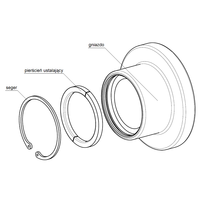 objímka, pojistný kroužek, pojistný kroužek a mazací hlavice