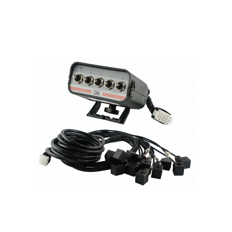 Počet ovládaných sekcí v rozvaděči: 5 Všechny spínače nahoru a dolů s automatickým centrováním (1-0-2) bez západky. Panel lze připojit ke zvukovému nebo světelnému výstražnému signálu. --------------------------------------------------------------------------- Materiál těla: plast Napětí: 12V DC --------------------------------------------------------------------------- Délka napájecího kabelu: 2m Elektrické připojení: zástrčka 3-pólova 25A --------------------------------------------------------------------------- Délka kabelu pro připojení rozvaděče: 4m Elektrické připojení: zástrčky 3-pólove, ISO 43650