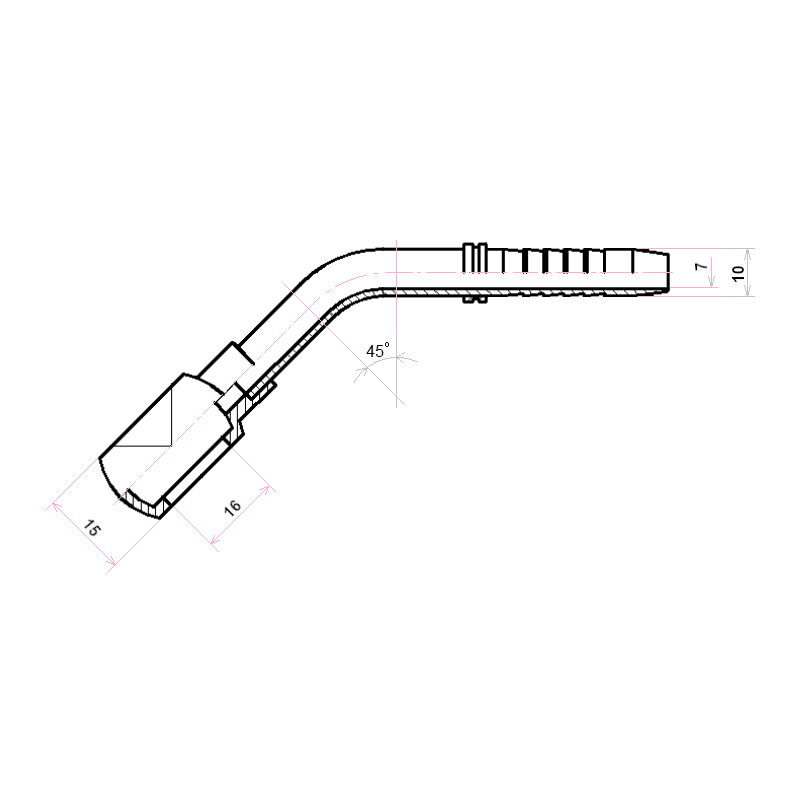 RNM-45 úhlová spojka banjo DN10 1SN 2SN s očkem 16 mm, výška 15 mm