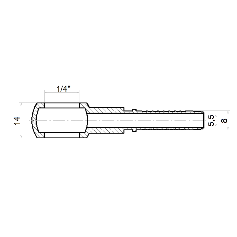 RNR PŘÍMÝ SPOJ DN8 1/2SN OTEVÍRACÍ PRSTĚK: 1/4" V: 14 mm