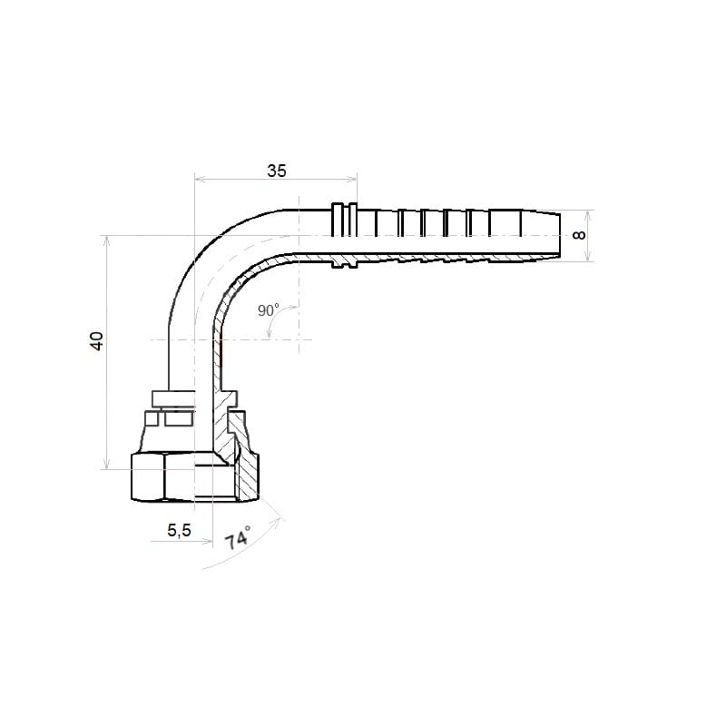 Úhlová armatura DKJ-90 DN8 1/2SN 9/16"-18 UNF
