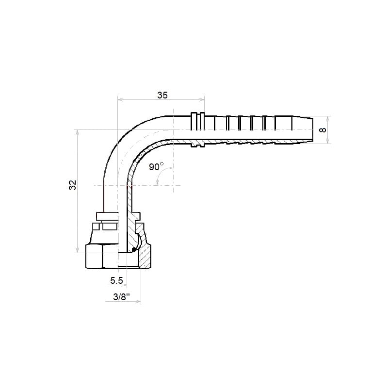 Úhlová armatura DKR-90 DN8 1SN 2SN 3/8"