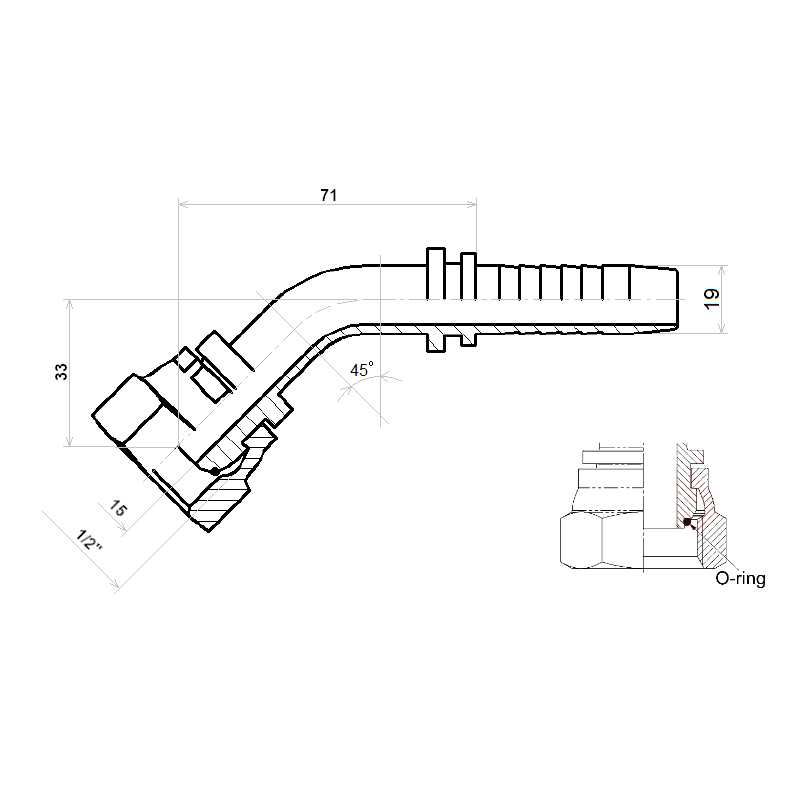 Úhlové šroubení DKR-45 DN19 (20) 1SN 2SN 1/2"