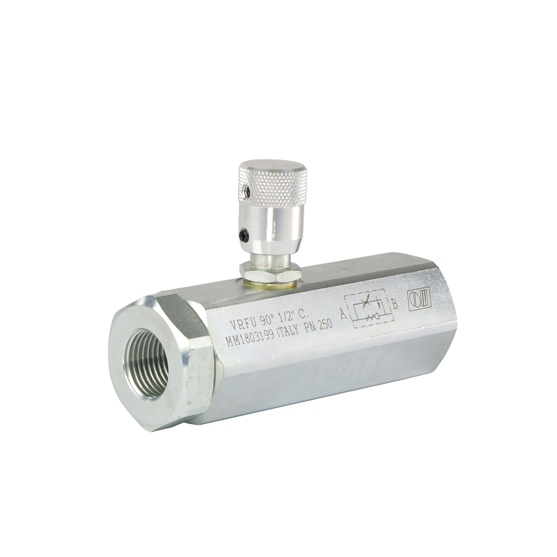 Ventil VRFU 90C s regulací jednosměrná tlumivka závity: 1/2" průtok: 28L/min maximální tlak: 250bar